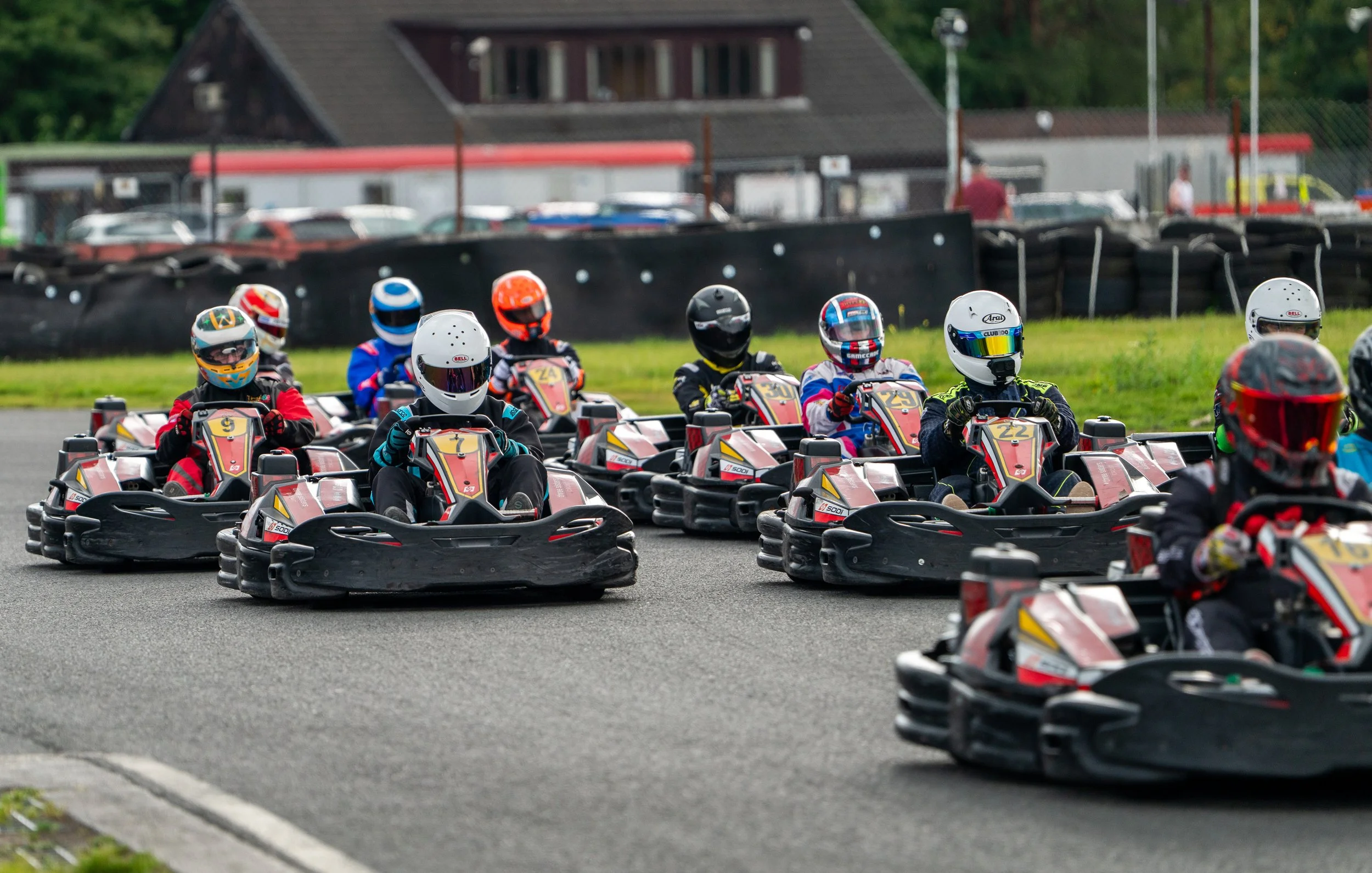2-stroke races begin when the green flag is displayed - drivers must maintain a kart lengths gap however to the kart in front until they cross the start line. This same starting procedure is also used in the Silverstone Championships for Race 2 when the 2x15min format is used.